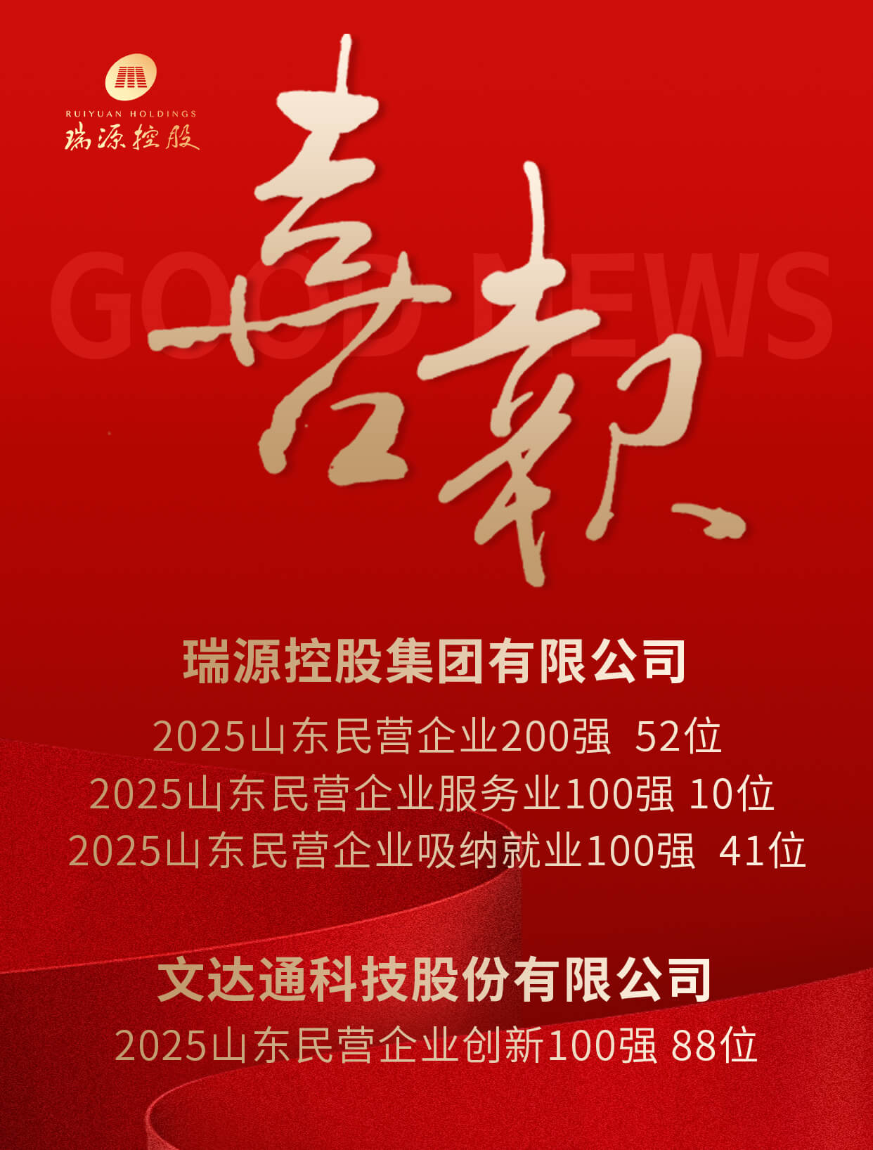 在這具有全省標桿意義的榜單中,瑞源控股集團憑借雄厚的綜合實力與穩(wěn)健的發(fā)展成績,成功躋身多項榜單,實現(xiàn)了“四榜齊上”的優(yōu)異表現(xiàn):既榮登山東民營企業(yè)200強,又入選服務業(yè)100強與吸納就業(yè)100強,旗下青島文達通科技股份有限公司更以科技創(chuàng)新優(yōu)勢登榜創(chuàng)新100強。